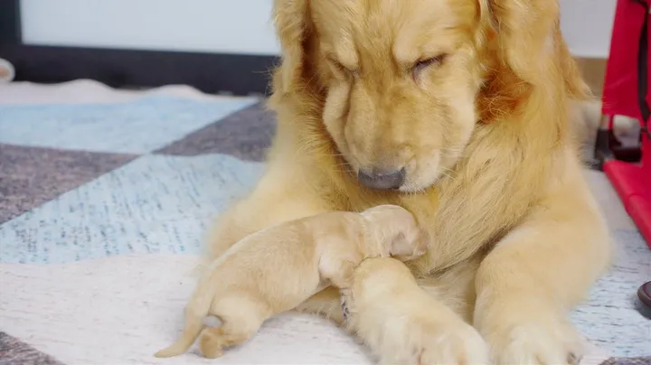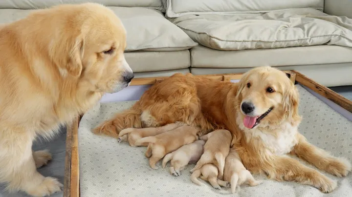 Golden Retriever Totally Confused Meeting His Newborn Puppies for the First Time