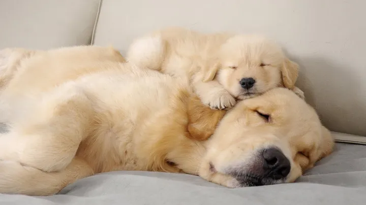 Golden Retriever Mom Keeps Dad Away From Puppies