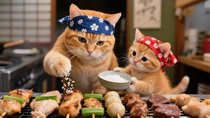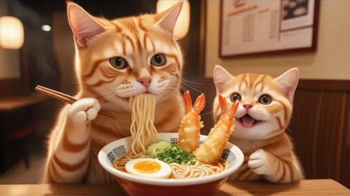 Mama Cat and Kitten Work Hard Selling Udon to Help Stray Cats 🍜🐾 A Heartwarming Story