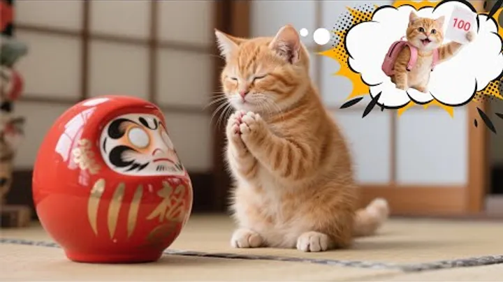 ジンジャーの不運が止まらない😿 ママ猫が日本のだるま人形で幸運を祈る 🐾🍀