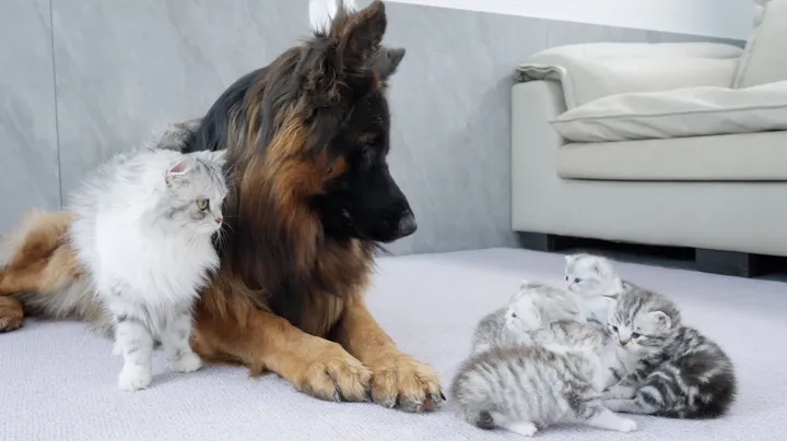Mom Cat Tells Kittens German Shepherd Is Safe